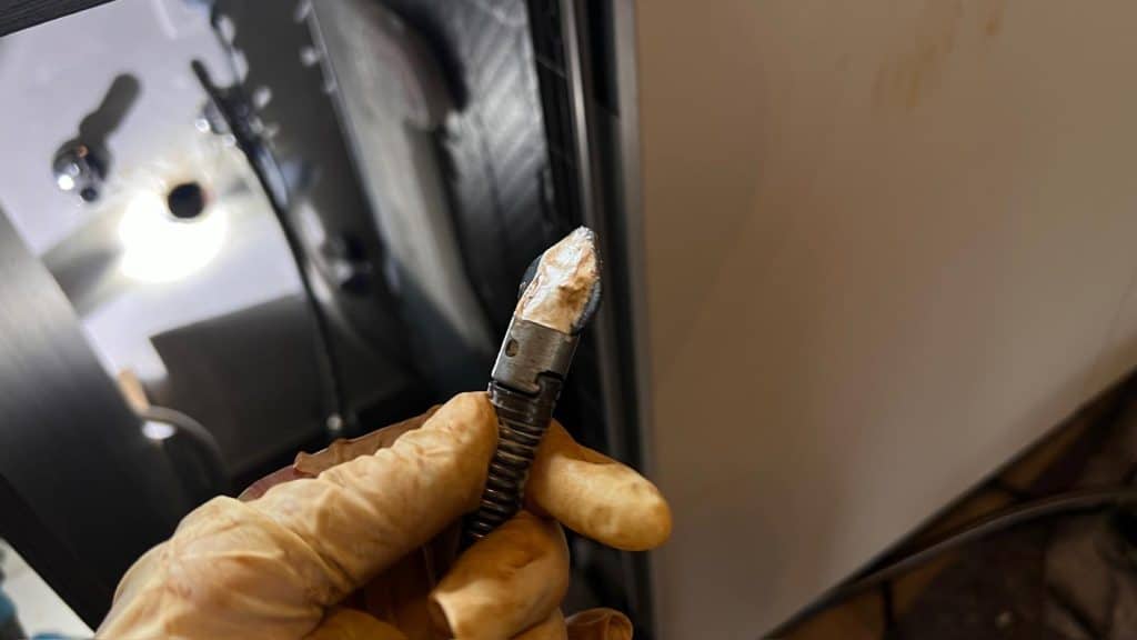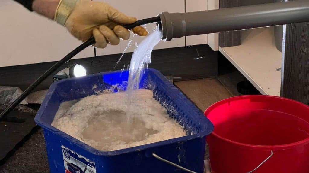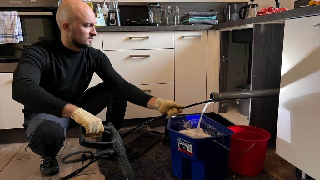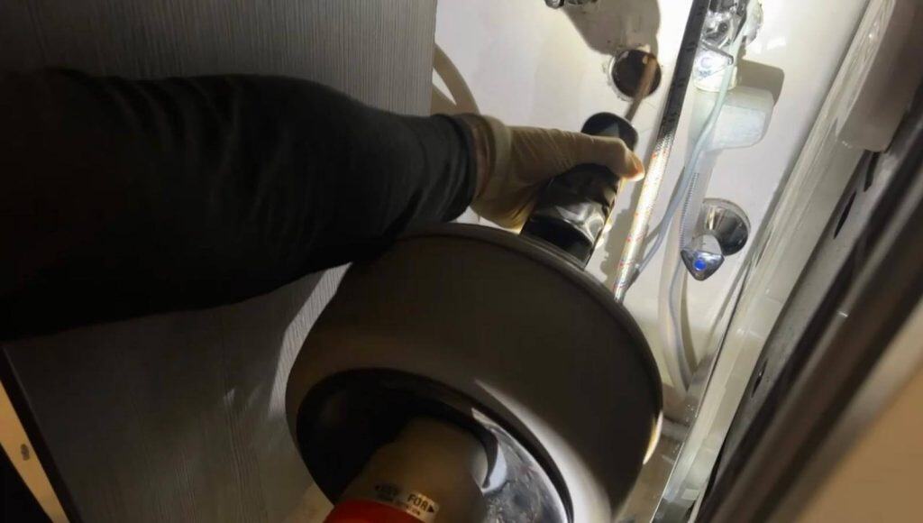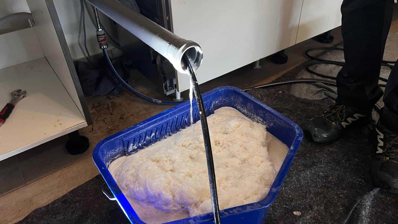 - Čistenie sifónu pod vaňou: Pri čistení sme zistili, že sifón pod vaňou bol tiež zanesený a vyžadoval údržbu. Keďže však vaňa nemala servisný otvor, bolo nutné pristúpiť k ďalšiemu kroku.